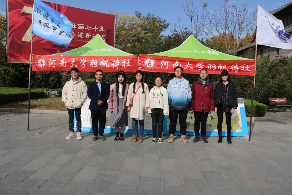 11月13日下午,文学院团委负责人卡哈尔、2019级本科生辅导员赵婧老师来到羽帆诗社的摊位前,亲切问候社员,了解征稿情况,并进一步提出建设性意见。卡哈尔老师表示,“但为君兮”情诗大赛是羽帆诗社的品牌活动,应该在原有的活动内容上进行灵活创新,不断为已有的形式注入新的活力,提高学生的创作积极性,推动诗社的持续发展。赵婧老师说:“羽帆诗社自成立以来,开展了风格多样、形式别致的线上线下活动。诗社的成长,离不开社员们共同的维护,希望大家将诗社的品牌活动越办越好。”