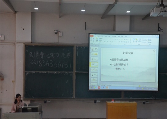 活动伊始,由受邀的三位本科生同参赛同学分享自己的比赛经验。段雯晖从前期准备、选题内容和成功秘诀三个方面向在座成员分享了自己的成功之道。她强调在前期准备中要做好时间安排,提前准备;在选题方面要有热点,即具有创新性,切忌着手点过大,同时内容要充实、格式要合适;她还告诫同学们,在成功道路上谨记四个字:用心、扎实。张涵越大致介绍了“创青春”的三个赛事:实践挑战赛、公益挑战赛和创业计划赛,并提到参加“创青春”比赛的意义,她特别强调要注重学科交叉以及市场调研;此外,她还从项目的创新性、实用性和科学性三个方面介绍了计划书评判标准,并以自己的团队为例分享了团队建设方面的经验。贺雪从项目开展和团队组织两个切入点讲到要了解社会现状,做好市场调研;要落于现实,切忌空谈;要做好计划,稳中求进;要加强团队交流和与指导老师的沟通。