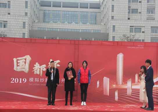 2019年11月22日上午,我校第十一届“国都杯”模拟炒股大赛在金明校区马可广场隆重开幕,经济学院党委副书记王玉珍、团委副书记李洋和国都证券公司营销总监杜立磊出席了本次开幕式。