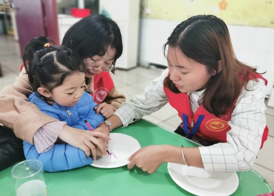 在认真了解注意事项后,志愿者来到活动室,与孩子们一起画彩绘、制作手工转盘。这种寓教于乐的游戏形式不仅锻炼了孩子们的学习和动手能力,也让他们体会到了生活的美好和乐趣。一棵棵四季树,画上了孩子们的希望,也在志愿者心里留下了温暖。最后,志愿者穿上可爱的玩偶服装和孩子们亲密互动,近距离的接触拉近了志愿者和孩子间的距离。