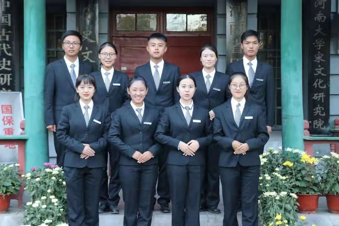 清晨,我校历史文化学院导游部的讲解员们身着正装,集体亮相。他们神采奕奕,以饱满的热情接待来访游客。校园导游们为新老校区的河大学子以及途中加入的校外访客讲解百年河大波澜壮阔的历史,带领他们欣赏河大古朴典雅的建筑。南大门到大礼堂,短短500米,古朴庄重的南大门、见证风雨沧桑的河南留学欧美预备校门、充满日式风格的小礼堂、美丽典雅的七号楼、简单大方的博学楼、雄伟巍峨的大礼堂,相互呼应,见证着河大的成长。一路上,讲解员们滔滔不绝,为游客们介绍我校的一草一木,一砖一瓦,举手投足间尽显我校深厚的文化底蕴。
