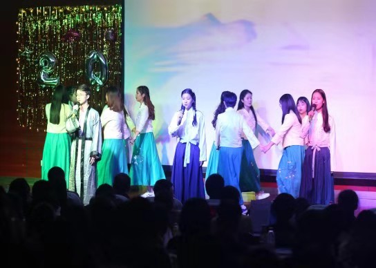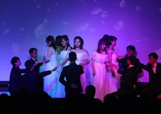 晚会在炫酷的热舞中拉开序幕。诗朗诵《关雎》再现古诗文音韵美,一句“关关雎鸠,在河之洲”,将观众带入绝美的意境:成双成对的雎鸠在沙洲上嬉闹追逐,华羽流光,声音婉转。古诗新唱,赋中见兴,景中见情,意境优美。绚丽灯光与柔美音乐交相辉映,温婉悠扬的歌曲《你曾是少年》将青春力量注入每一个音符;小品《我的路》幽默风趣,欢乐中给人启迪:坚持梦想,走自己的路;刚柔并济的跆拳道《武道魂》瞬间点燃晚会现场的气氛;歌曲《风吹麦浪》令人忆起金色时光,展现出学院老师多才多艺的一面。更有阳光时尚的T台秀、余音绕梁的歌曲串烧、曼妙多姿的华尔兹《致青春》让人应接不暇。整场晚会精彩纷呈,高潮迭起,引来台下阵阵掌声,欢呼声一浪高过一浪。过往不忘,未来可期,歌曲《光阴的故事》为晚会画上句号。晚会期间穿插游戏与抽奖环节,增强晚会的趣味性,也为师生们送去了欢乐与祝福。