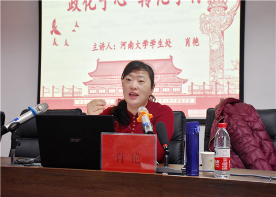 为引导青年学子知行合一,不仅是在思想上向党靠拢,更要在行动上有所作为,扣好人生的第一粒扣子。11月29日上午,马克思主义学院青马班在科技馆五楼会议室开展“政化于心,转化于行”的主题讲座学习。本次课程由河南大学学生处副处长肖艳主讲。