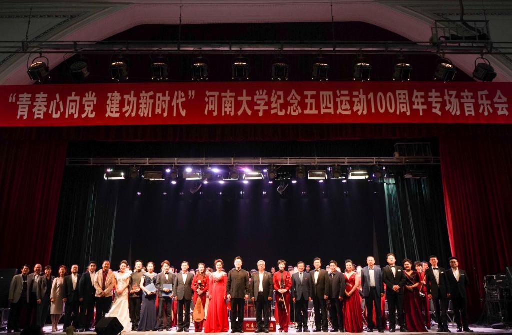 4月29日晚,由校党委学生工作部、校团委主办的“青春心向党 建功新时代”河南大学纪念五四运动100周年专场音乐会在明伦校区大礼堂隆重上演。校党委书记卢克平,党委副书记张宝明,党委常委、副校长杨中华,党委常委、纪委书记杨朝阳和全校千余名师生一起欣赏了音乐会。