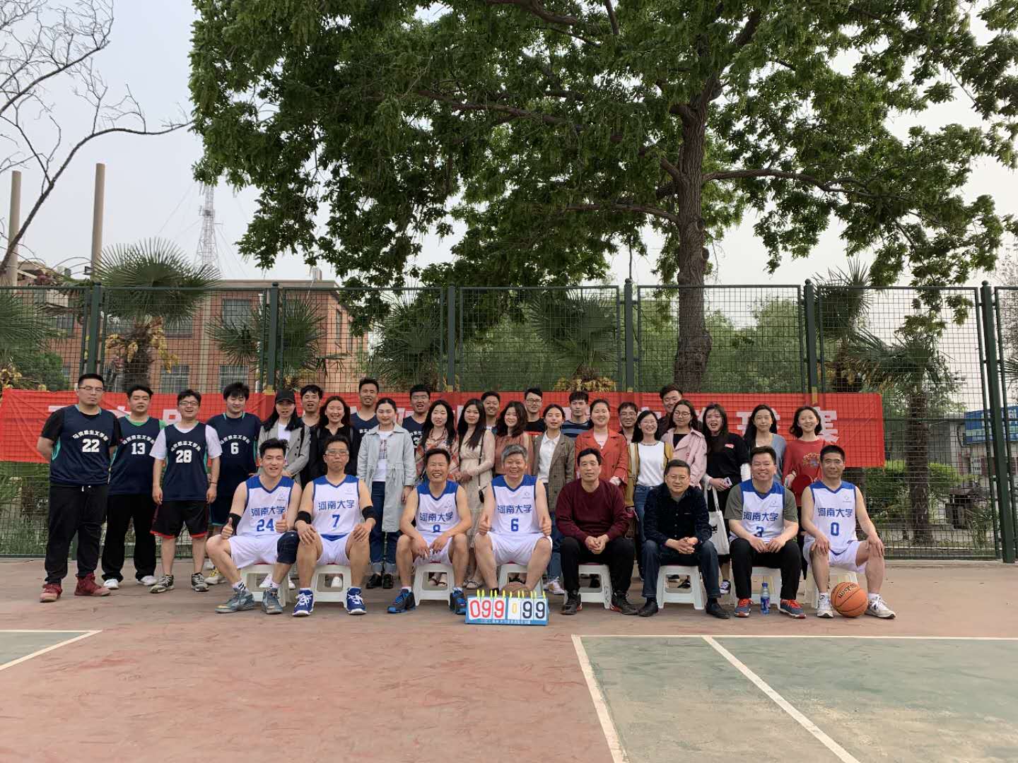 4月18日下午,马克思主义学院在西操场塑胶场地举办师生联谊篮球赛,学院师生踊跃参赛。