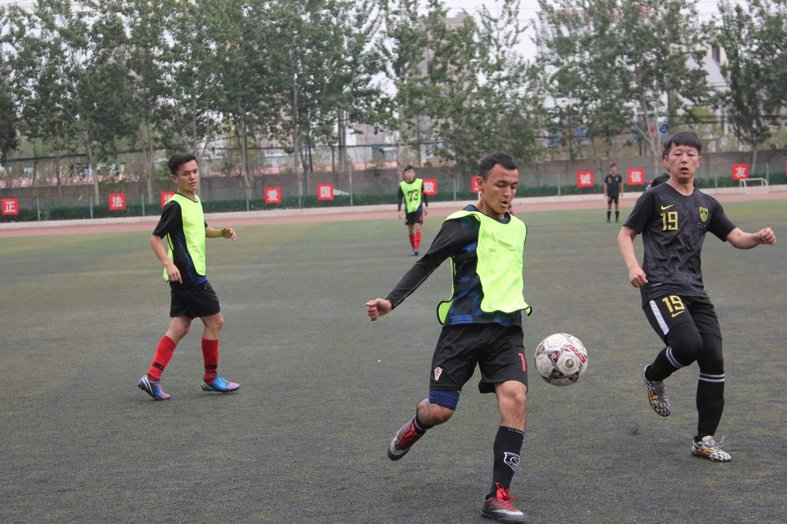 下半场开始,赛场紧张的气氛愈加激烈。尽管处于被动的局面,我方队员毫不气馁,门将多次扑球成功,后卫精彩解围,前锋有条不紊地组织进攻。后半场比赛进行至一半,文学院22号球员卡麦浪·库尔班拿球后,灵活避开对方防守,长传给我方前锋6号球员呼思乐,呼思乐迅速把握进球机会,单刀闯入对方禁区,挑射破门,为我方拿下一分。比赛将近结束,虽物理与电子学院胜局将定,文学院男足毫不懈怠,尊重比赛、尊重对手,拼力创造进球机会,无奈在对方后防线破坏下再无建树。最终,文学院以1:3的比分惜败物理与电子学院,荣获亚军。
