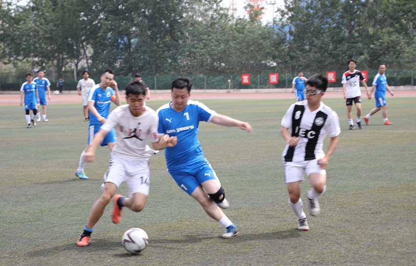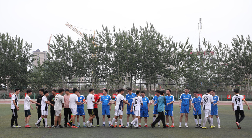 校友球员们早早来到场地热身,他们身着统一队服,依然是当年的蓝色,身背当年的号码,胸前书写“十年”。比赛中,校友队密切配合,宝刀未老,技术娴熟,经验老到。面对当年的学长,在读的学弟们满怀敬意但毫不怯场,满场虎虎生气,整场比赛精彩纷呈。校友足球队员在校期间曾带领学院球队多次入围“河大杯”决赛,并创造了一冠三亚的优异战绩。此刻,他们在场上再现了当年为学院荣誉而拼搏的劲头和昂扬斗志。