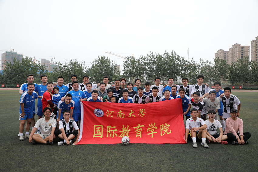 5月11日上午,一场跨越十年岁月的足球友谊赛在金明校区志义体育场进行,国际教育学院 2009年获“河大杯”冠军队员返校交流,与学院在读球员同场切磋技艺。学院领导老师现场观赛并为大家加油。