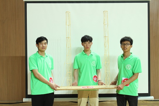 本次大赛主题为“附着式升降脚手架支撑结构模型设计”,参赛队要在规定时间内,使用限定材料,按照赛题要求,完成脚手架支撑结构模型的设计、制作并进行加载测试。在精心的准备下,土木建筑学院代表队赛有条不紊、沉稳发挥,顺利完成模型的制作、安装。在模型介绍与评委提问环节,队员们凭借清晰的思路,简明的语言赢得了阵阵掌声。随后的模型加载中,完善的方案与精准的操作助力队员们拿到了不错的分数。在指导老师与参赛队员的共同努力下,刘宏伟、宋雨航、彭佳队伍荣获二等奖。章志伟、郑万州、王兵兵队伍获一等奖与最佳制作奖,并取得国赛参赛资格。