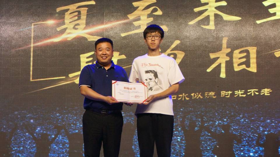 在毕业晚会上,化学化工学院2019届毕业生在“520毕业季1元捐”活动中捐款521元,我校校友会副主任刘会军对此表示感谢并颁发奖状,毕业生代表李强伟上台领奖。