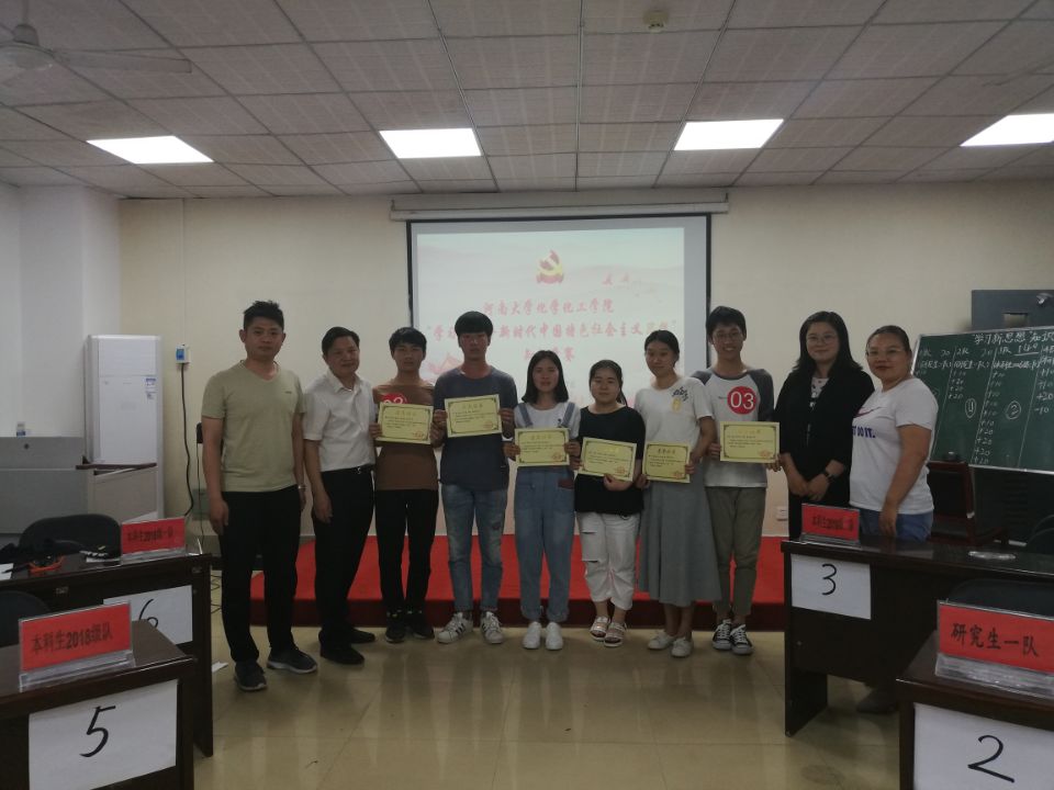 为深入学习、宣传、贯彻习近平新时代中国特色社会主义思想,引导同学们用新思想武装头脑、指导实践,5月27日中午,化学化工学院于学院226会议室开展“学习习近平新时代中国特色社会主义思想”知识竞赛。学院党委副书记马文海、2015级辅导员兼团委负责人郭佳、2016级辅导员宁攀、2018级辅导员商华文受邀出席。