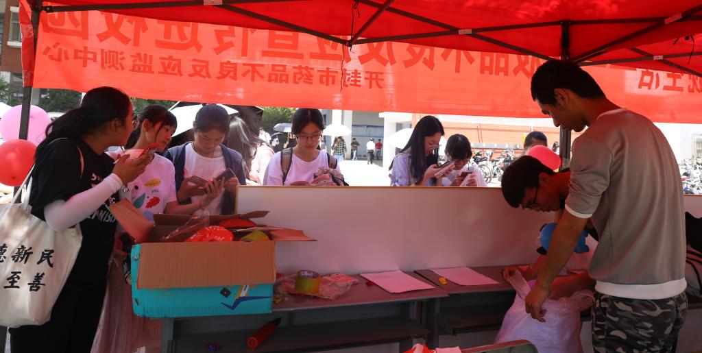 活动分为线上答题和线下答疑两个环节。经过前期学院官方QQ、微信公众号的积极宣传,同学们已基本了解活动的流程与形式,并纷纷关注学院公众号参与线上答题活动。知识竞答的内容大都为同学们不熟悉的有关化妆品安全的基础知识,在答题的同时,帮助同学们了解到在以后化妆品的使用中要更加谨慎。期间,不少同学来到活动摊位就题目中的疑难点提出询问,工作人员都一一进行了耐心的解答。此外,许多同学对“如何看待化妆品的使用”及其相关问题提出了自己的观点,其中一位女同学表示:“作为一个使用化妆品的大学生,我在此次活动中知道了很多关于化妆品安全的知识,相信在以后的使用中会更加得心应手。”活动期间,工作人员积极发放化妆品知识宣传手册,加深同学们对化妆品的了解,活动宣传达到预期效果。