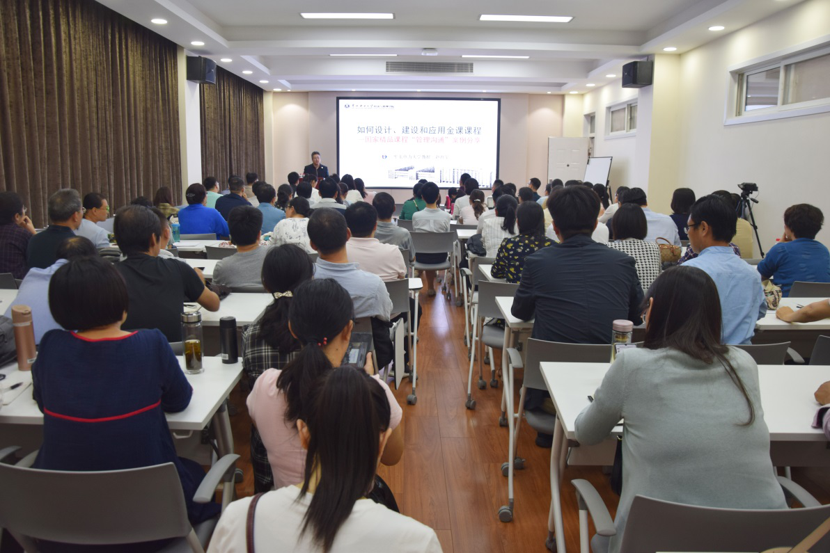 赵教授首先系统介绍慕课发展的历史沿革、平台发展情况和新时代教育部关于金课建设的相关政策和要求;其次提出在线开放课程“3-4-6-3”系统性教学设计过程模式,并以其主持的国家精品在线开放课程《管理沟通》为例,详细讲解了金课的设计、建设和应用经验,特别是慕课制作关注的重点和慕课录制的注意事项;最后提出混合式金课建设与发展建议,即提前规划,线上线下;重视选题,发挥特色;既重内容,更重形式;有道有术,有趣有用;学生为主,教师为辅。讲座结束后赵教授与现场的老师们开展互动。
