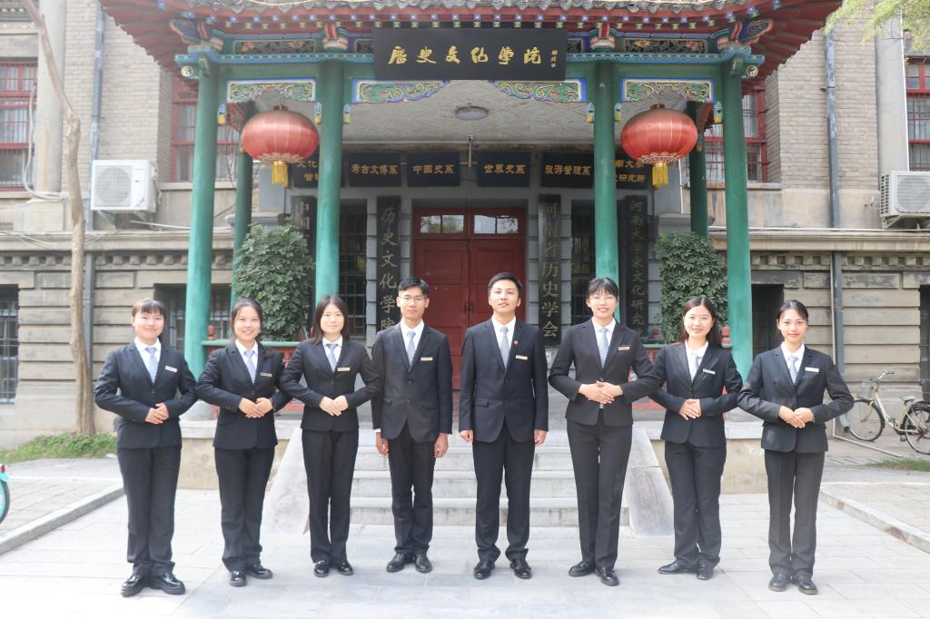 清晨,我校历史文化学院导游部的讲解员们身着正装,集体亮相,以精神饱满的工作状态迎接来访游客。跟随讲解员的脚步,参加本次活动的河大学子和慕名而来的校外访客一起踏上旅程。从端庄古朴的南大门,到见证风雨的预校门;从日式风格的小礼堂,到秀丽典雅的七号楼;从简朴大方的九号楼,再到雄伟壮观的大礼堂,博雅路上,讲解员们滔滔不绝,落落大方,举手投足间尽显专业素养,赢得了来访游客们的阵阵掌声。