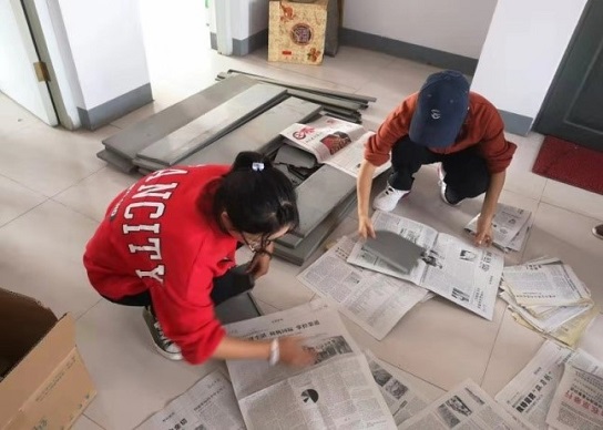 下午三时三十分左右,第三小队到达赵建国教授家中。得知赵教授即将搬家,而苦恼于自身行动不便而无法处理杂物,志愿者们便积极地分工帮助教授整理房间:将茶几搬入地下室、拆卸铁质书架、书籍装箱……当满头大汗的志愿者们看到教授肯定的眼神,并收到教授的著作作为感谢时,每位志愿者都收获了满满的幸福感。