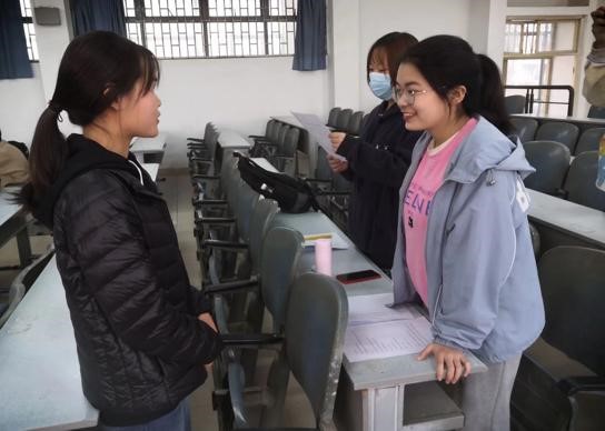 3月28日上午八点,志愿者选拔面试在金明综合楼2201教室举行。考生们提前按照编号分组,依次进行面试考核。面试官们结合考生的个人情况进行提问,根据考生的语言表达、志愿服务经历等情况进行打分。最终,工作人员依据笔试和面试的综合成绩录取志愿者。这批志愿者将继续参加相关培训,培训内容包括马拉松医疗基本知识、物资发放、秩序维护等方面。