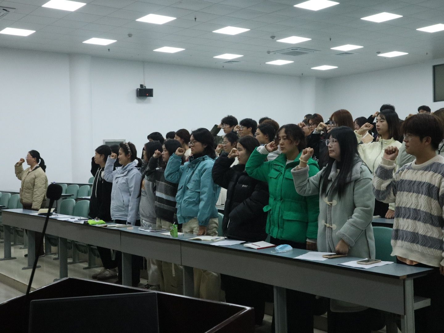 会议伊始,会长魏玉洁热情开场,介绍了本次全委会的议程安排,强调全委会是总结过往、规划未来的重要契机,号召全体成员以饱满的热情参与其中。随后,现场播放了一段回顾药青协过往志愿活动的视频,画面中成员们在社区服务、爱心奉献等活动里的身影,迅速将大家带入对志愿精神的共鸣中。接着,团委老师鲁蒙蒙进行讲话。她对药青协过往的工作成果给予充分肯定。同时,她也为协会发展提出了宝贵建议:一要强化专业特色;二要注重成员成长;三要加强对外联动。随后,会长李锦雄发言,他回顾了协会成立以来在志愿服务领域的探索与成果。同时,他客观分析了工作中存在的不足。会长周梦阳也阐述了协会2025-2026学年的工作计划,强调各部门之间团结合作,各司其职,希望大家在接下来的志愿活动中齐心协力,共创辉煌。随后,部长们发言,他们介绍了部门的工作安排,结合自身在协会的成长经历,分享了部门协作与活动执行的经验,“每个部员都是协会的重要一环,希望大家在各自岗位上主动担当,在协作中碰撞出更多创意火花”。部员代表也踊跃发言,表达了对志愿工作的热情与对个人成长的期许,不少新部员提到“加入药青协,就是想在志愿服务中把药学专业学得更扎实,也为社会做些实在事”。最后,会长李锦雄带领全体成员进行志愿者宣誓。掷地有声的誓言在会议室回荡,彰显着成员们投身志愿服务的坚定决心。宣誓完毕,全体参会人员在报告厅前合影留念,记录下这一意义非凡的时刻,本次全委会至此圆满结束。