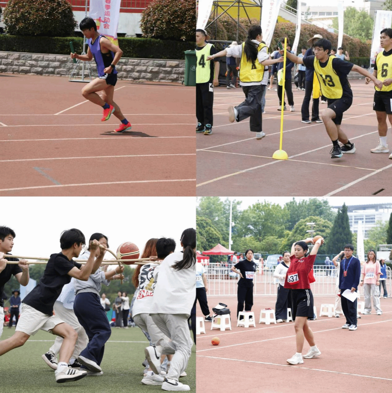 赛场上,文学院学子身姿矫健。田径选手全力冲刺、步伐稳健;跳远跳高的同学们助跑有力、起跳利落,动作流畅标准,赢得现场阵阵喝彩;集体项目中,大家步调协调、口号响亮,整齐的动作尽显团队气势。春风拂面,少年意气风发,为个人与集体的荣誉全力以赴。