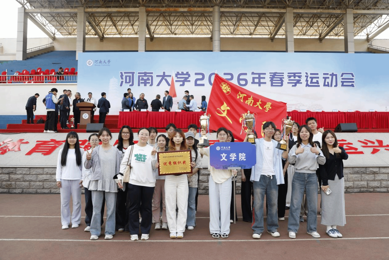 4月15日至17日,河南大学2026年春季运动会于金明校区志义体育场举行,文学院积极参与。体育健儿们斗志昂扬,在单人项目里挑战极限,在集体项目中齐心协力,将汗水挥洒赛场。经过激烈角逐,文学院荣获河南大学2026年春季运动会优秀组织奖、男子甲组团体第八名、女子甲组团体第三名、团体总分第二名。